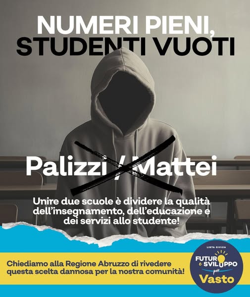 L’accorpamento non è solo una fusione amministrativa: significa la perdita di un’identità scolastica, di percorsi formativi qualificati e di una tradizione culturale che arricchisce da sempre Vasto. Significa classi più affollate, meno servizi, meno attenzione per gli studenti.