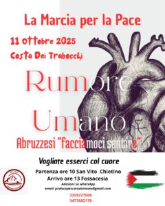 La Costa dei Trabocchi si prepara ad accogliere un grande appuntamento di partecipazione civile e democratica: la Marcia per la Pace – Abruzzesi, facciamoci sentire! promossa da Abruzzo in Movimento e organizzata Rumore UMANO e dall’Associazione Pescara Aternum. Una manifestazione pensata per ribadire la solidarietà internazionale e riaffermare il valore del dissenso come diritto inalienabile in una società libera.
