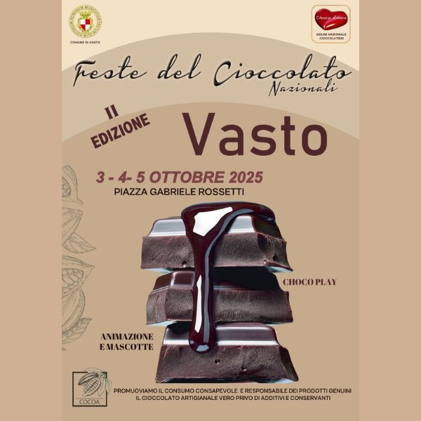 Dopo il successo della passata edizione torna a Vasto la Festa del Cioccolato Artigianale, in programma da oggi, venerdì 3, a domenica 5 ottobre 2025, nella cornice di Piazza Rossetti. L’iniziativa è realizzata con il patrocinio del Comune.
