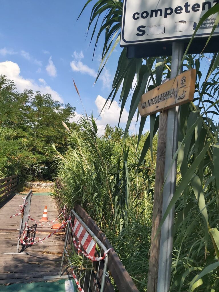 Oggi, però, a detta dell’assessore Alessandro D’Elisa, dovrebbero iniziare gli interventi di manutenzione che il Comune ha affidato alla cooperativa Anthemis di Cupello. La coop dovrà ripristinare il tavolato e il corrimano di legno del ponticello, mettendo finalmente in sicurezza il percorso, ma in prospettiva l’amministrazione comunale sta pensando ad un intervento definitivo con una struttura in acciaio corten, molto resistente alla corrosione. Si tratta in pratica dello stesso materiale utilizzato per le staccionate presenti lungo la Via Verde Costa dei Trabocchi.