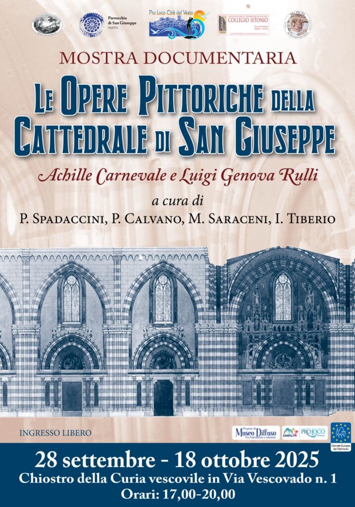 La Pro Loco “Città del Vasto”, in collaborazione con la Parrocchia di San Giuseppe, il Collegio Istonio, ha allestito la mostra documentaria “Le opere pittoriche della Cattedrale di San Giuseppe”, dedicata ad Achille Carnevale e Luigi Genova Rulli.
