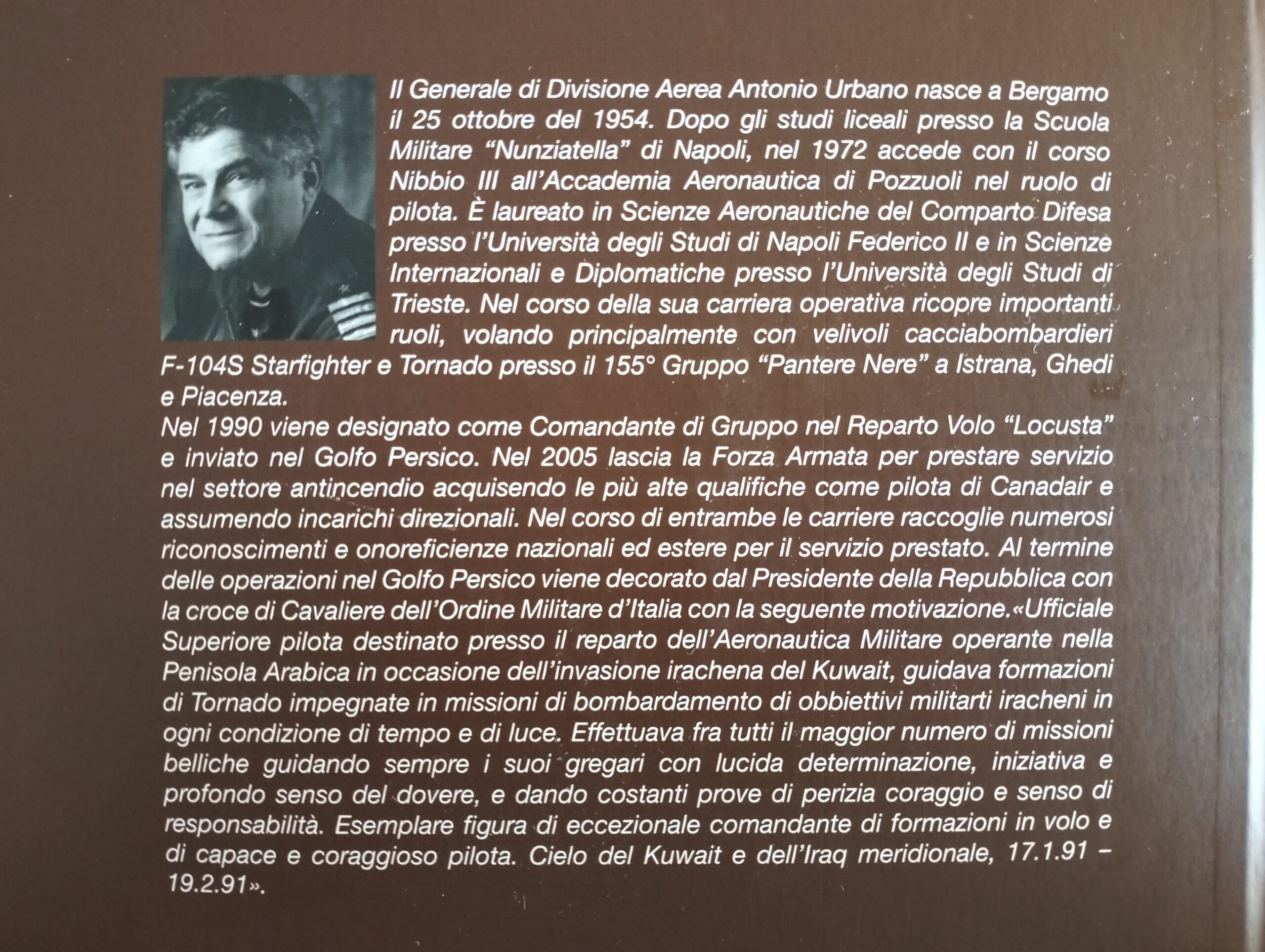Una rappresentanza della Sezione di Vasto AAA Aviatori d’Italia, nella persona del Segretario Roberto Bruno, ha partecipato giovedì 09 ottobre a Roma, a Casa dell’Aviatore, alla presentazione del libro “I trecento della Locusta. Le storie non raccontate” del Gen. Antonio Urbano, Comandante del Gruppo Volo e Capo Ufficio Operazioni del contingente dell’Aeronautica Militare Italiana, coi velivoli Tornado, durante la Guerra del Golfo del 1991. L’incontro è stato organizzato dalla Sezione AAA Roma Due Luigi Broglio presieduta dal Gen. Isp. C. (c) Nazzareno Cardinali, con l’intervento dello stesso Gen. DA (r) Antonio Urbano, del Gen. SA (c) Mario Arpino, del Gen. B. (r) Stefano Cosci, del Prof. Gregory Alegi, moderati dal Gen. B. (c) Alessandro Cornacchini.