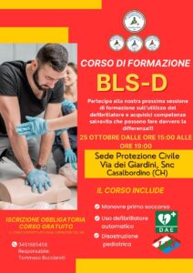 La Protezione Civile “Madonna dell’Assunta” di Casalbordino rinnova il proprio impegno nella tutela della salute pubblica promuovendo un’importante iniziativa di formazione rivolta a tutta la cittadinanza. Sabato 25 ottobre, dalle 15.00 alle 19.00, presso la sede di Palazzo Magnarapa, in piazza Garibaldi, si terrà un corso di BLSD (Basic Life Support and Defibrillation), ovvero di primo soccorso con uso del defibrillatore automatico esterno. L’appuntamento, organizzato in collaborazione con gli operatori del 118, rappresenta un’occasione concreta per imparare a gestire le emergenze sanitarie in modo rapido ed efficace, nell’attesa dell’arrivo dei soccorsi professionali. Durante il corso, completamente gratuito, i partecipanti riceveranno una formazione pratica e teorica sulle manovre salvavita, sull’utilizzo del defibrillatore automatico esterno (DAE) e sulle tecniche di disostruzione pediatrica, fondamentali per intervenire in caso di soffocamento nei bambini. “L’obiettivo spiegano gli organizzatori è quello di rendere ogni cittadino capace di affrontare con sicurezza i primi minuti di un’emergenza sanitaria, quando la prontezza e la corretta esecuzione delle manovre possono davvero fare la differenza tra la vita e la morte”. La Protezione Civile “Madonna dell’Assunta”, da anni attiva sul territorio, rinnova il proprio impegno nella formazione e nella prevenzione, promuovendo la solidarietà e la sicurezza civica. Conoscere le basi del primo soccorso è un gesto di responsabilità verso se stessi e la comunità. Per partecipare è richiesta l’iscrizione obbligatoria: informazioni e prenotazioni presso il responsabile Tommaso Bucciarelli, al numero 345 1685458.Un’occasione preziosa per imparare gesti che possono salvare una vita.