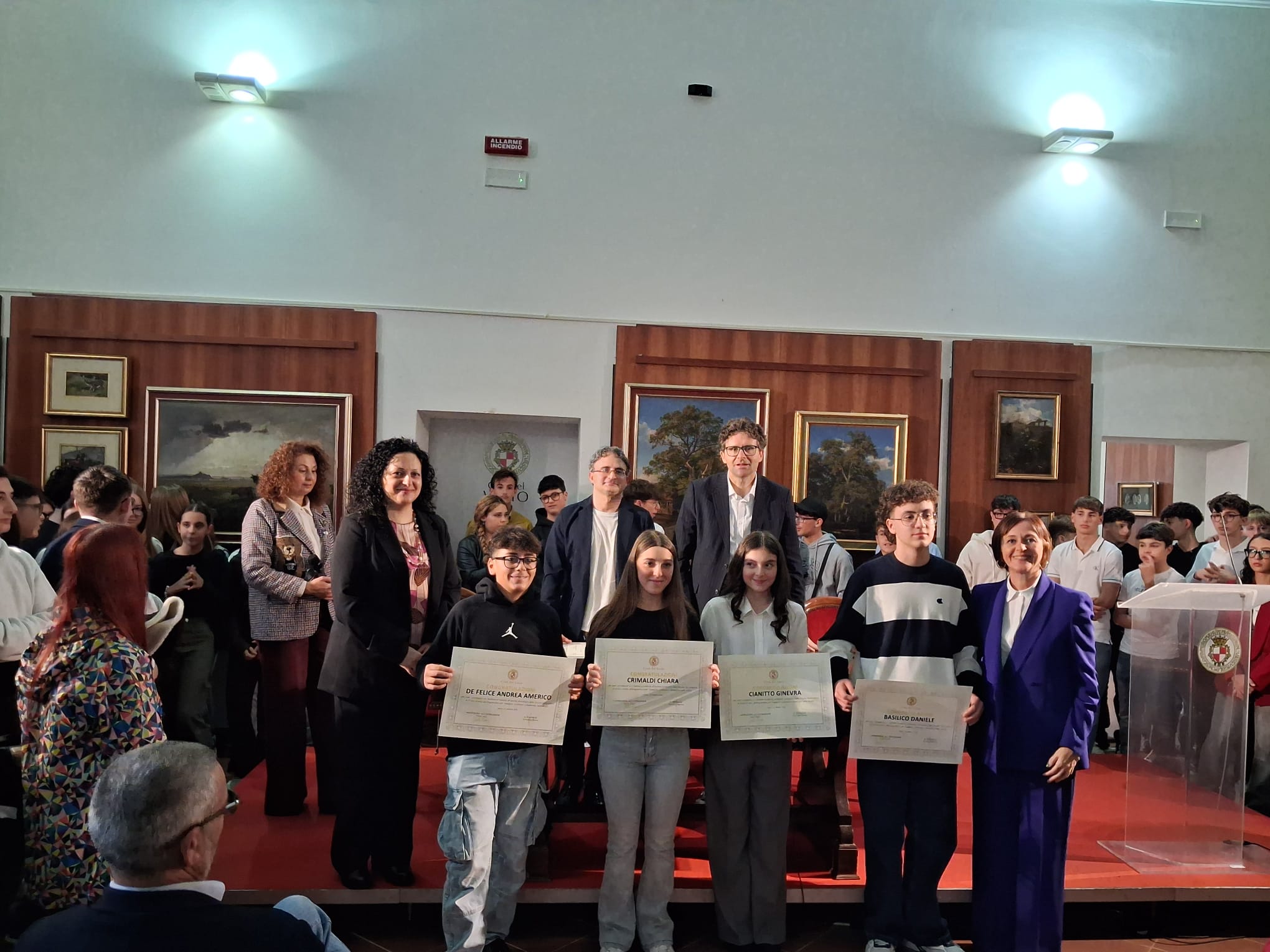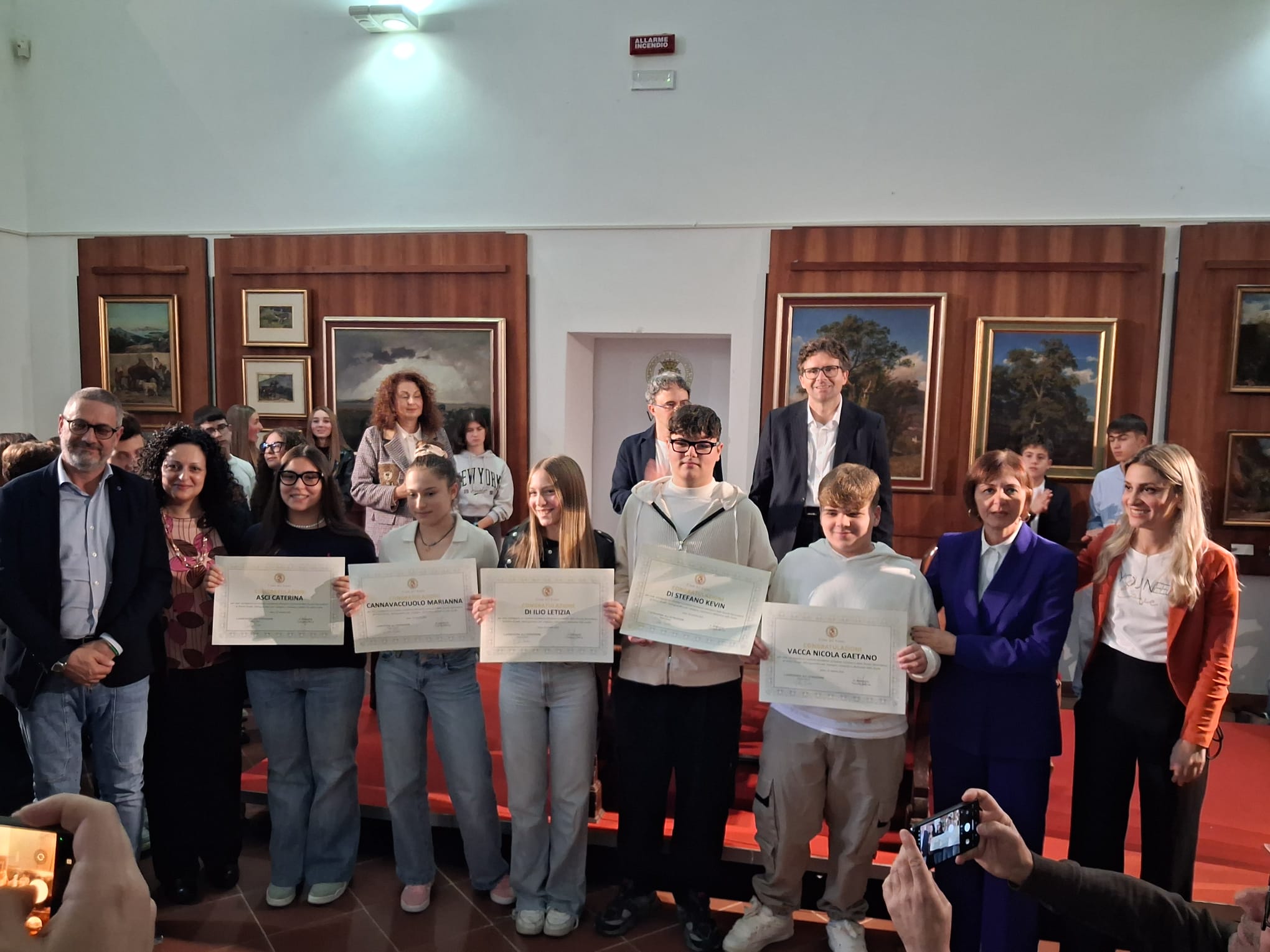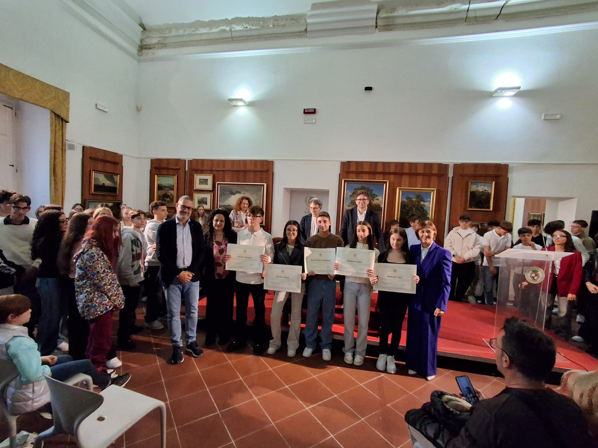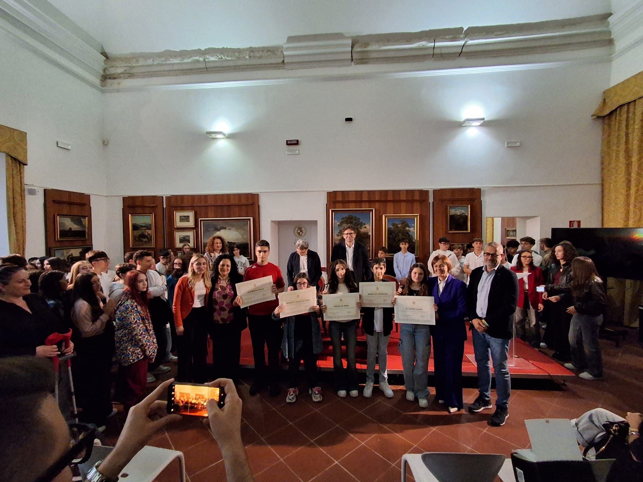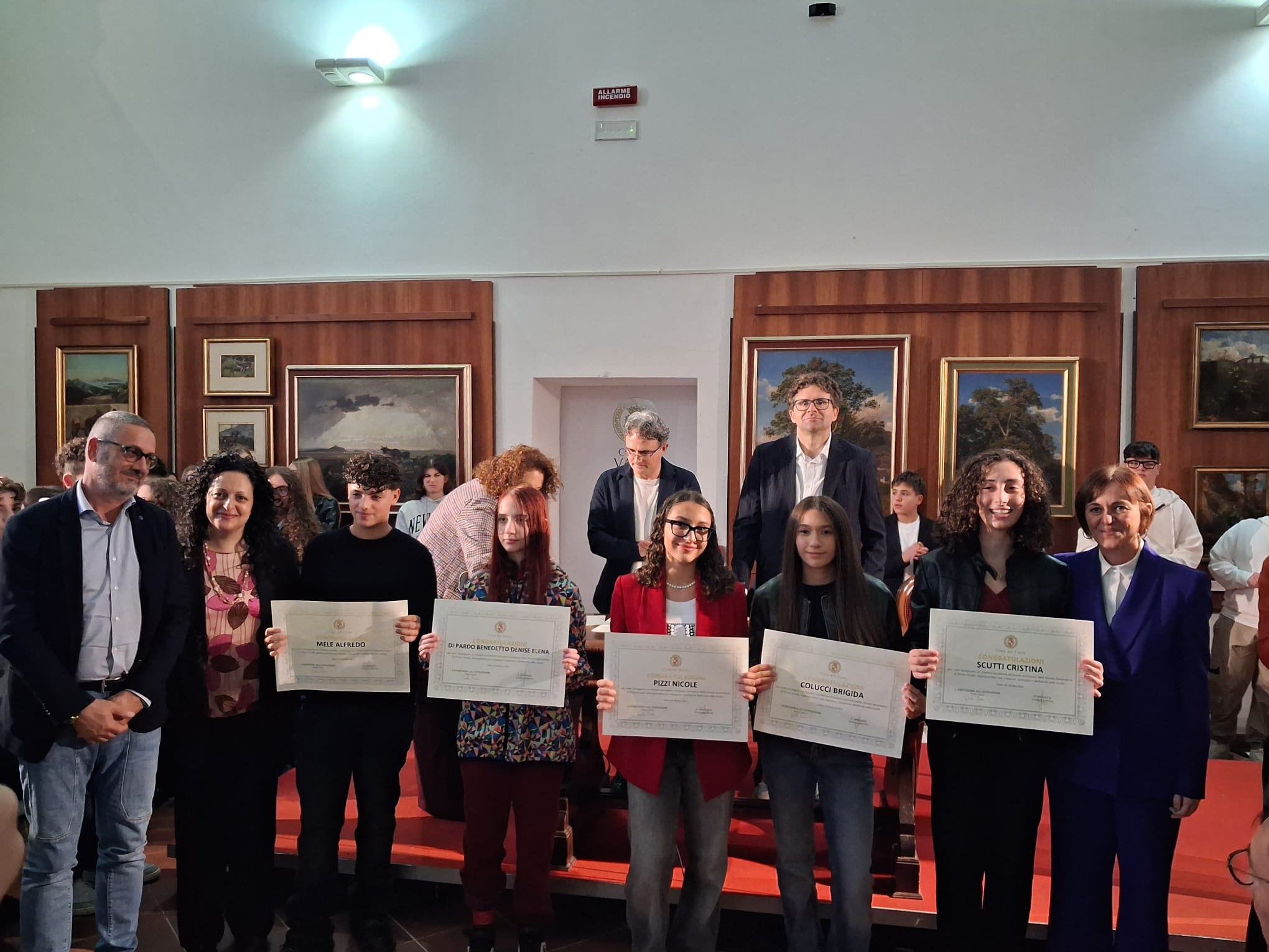 La Pinacoteca di Palazzo d’Avalos ha ospitato ieri pomeriggio, 25 ottobre 2025, una cerimonia ricca di emozione: la premiazione degli studenti e delle studentesse che hanno conseguito il massimo dei voti all’esame conclusivo della Scuola Secondaria di Primo Grado (anni scolastici 2023/2024 e 2024/2025).