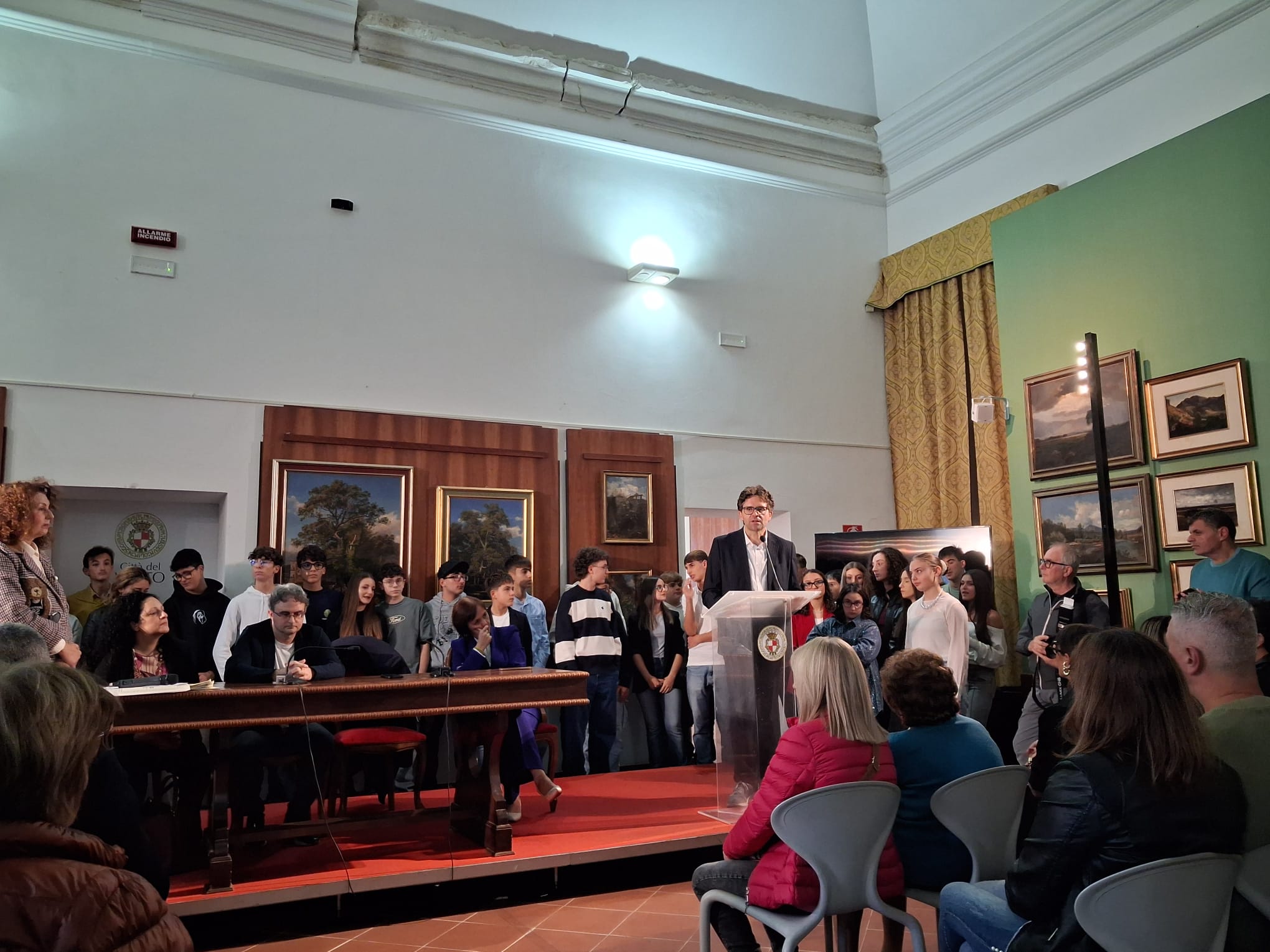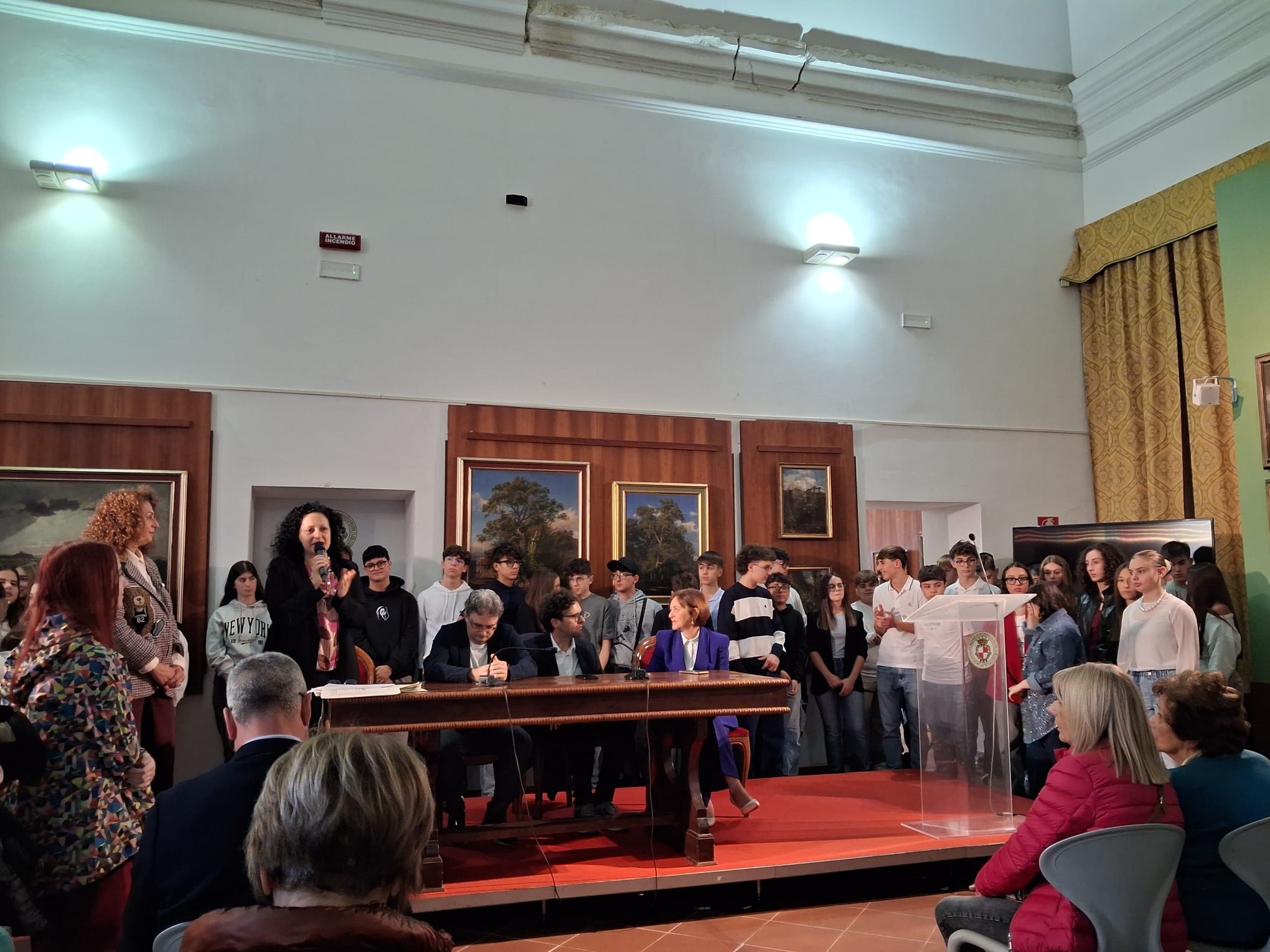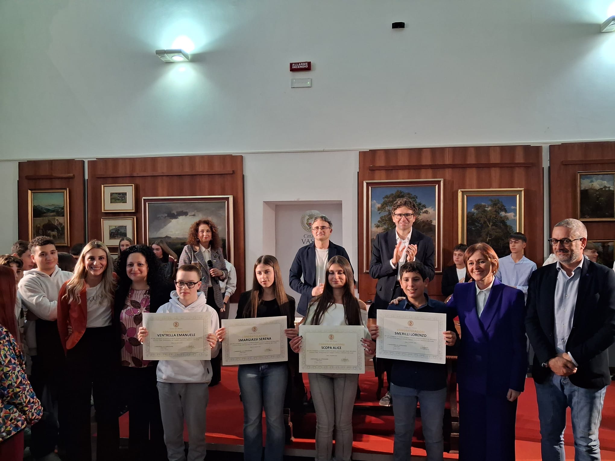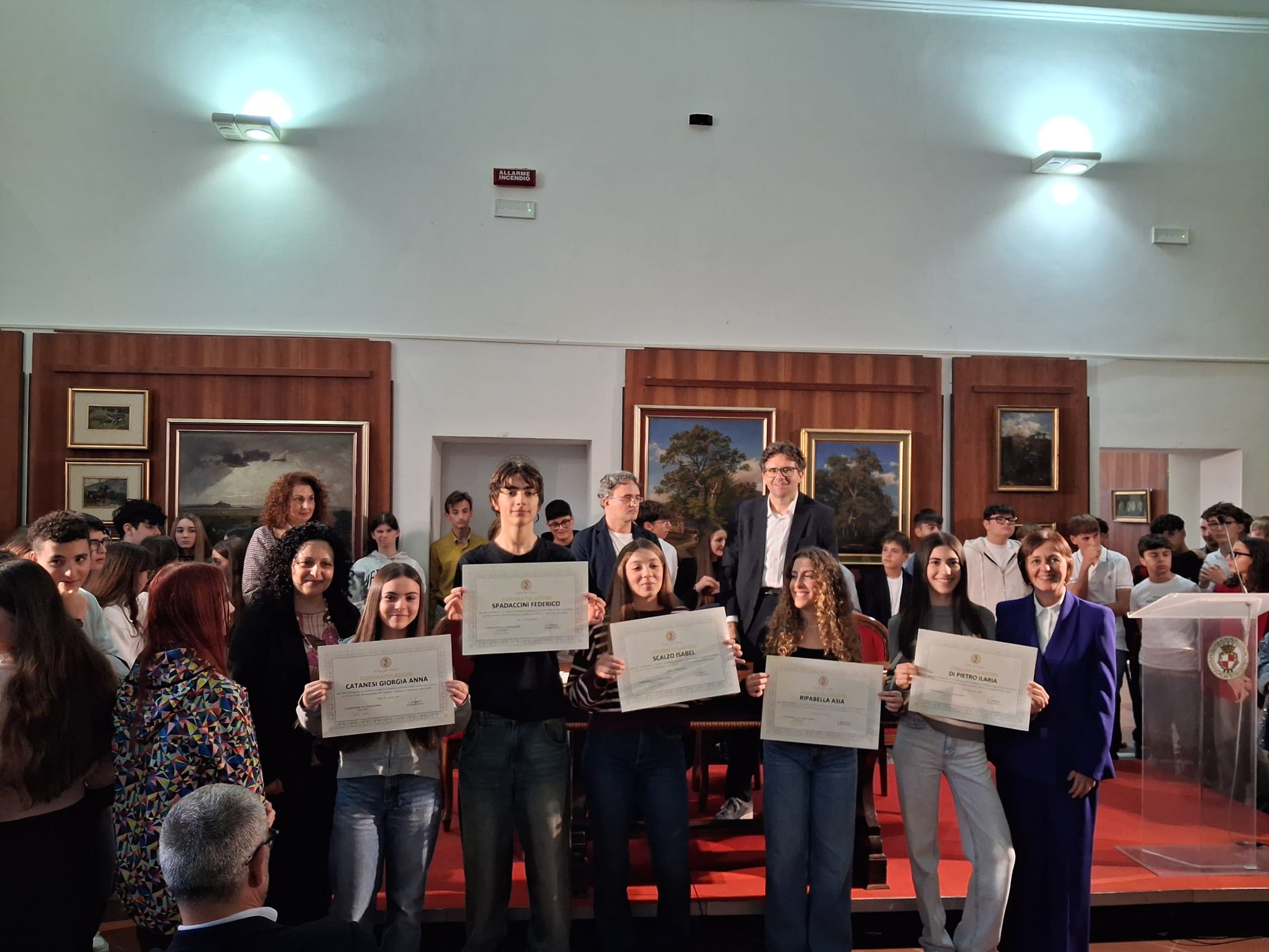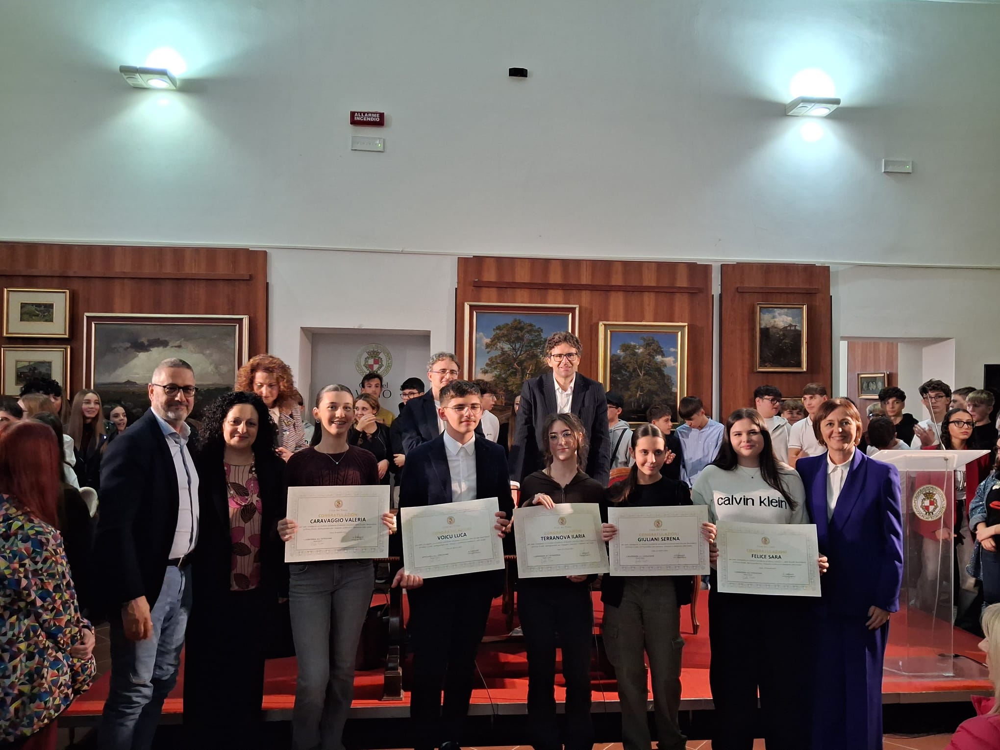 La Pinacoteca di Palazzo d’Avalos ha ospitato ieri pomeriggio, 25 ottobre 2025, una cerimonia ricca di emozione: la premiazione degli studenti e delle studentesse che hanno conseguito il massimo dei voti all’esame conclusivo della Scuola Secondaria di Primo Grado (anni scolastici 2023/2024 e 2024/2025).