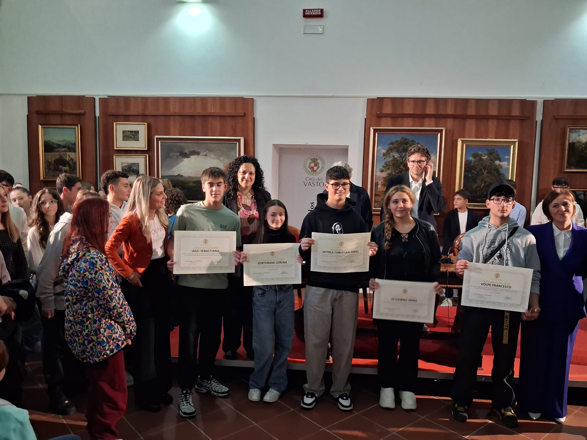 L’evento, organizzato dal Comune di Vasto per celebrare l’eccellenza, ha visto la partecipazione del Sindaco Francesco Menna, dell’Assessora all’Istruzione Paola Cianci e degli Assessori Gabriele Barisano e Anna Bosco. A rappresentare il mondo scolastico erano presenti la Dirigente dell’I.C. 1 “Spataro-Paolucci”, Prof.ssa Eufrasia Fonzo, e il Prof. Andrea Simoncelli per l’I.C. “Gabriele Rossetti”.