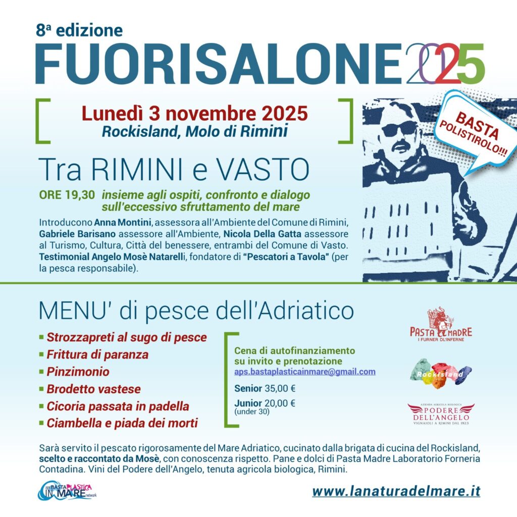«Nel corso della giornata – spiegano Della Gatta e Barisano – il Comune di Vasto sarà inoltre protagonista del confronto “Tra Rimini e Vasto”, dedicato alle azioni condivise per la riduzione della plastica in mare e la promozione di una pesca responsabile, simbolicamente rappresentata anche dal “brodetto vastese” preparato dallo chef Michael Di Cinto durante la cena conclusiva».