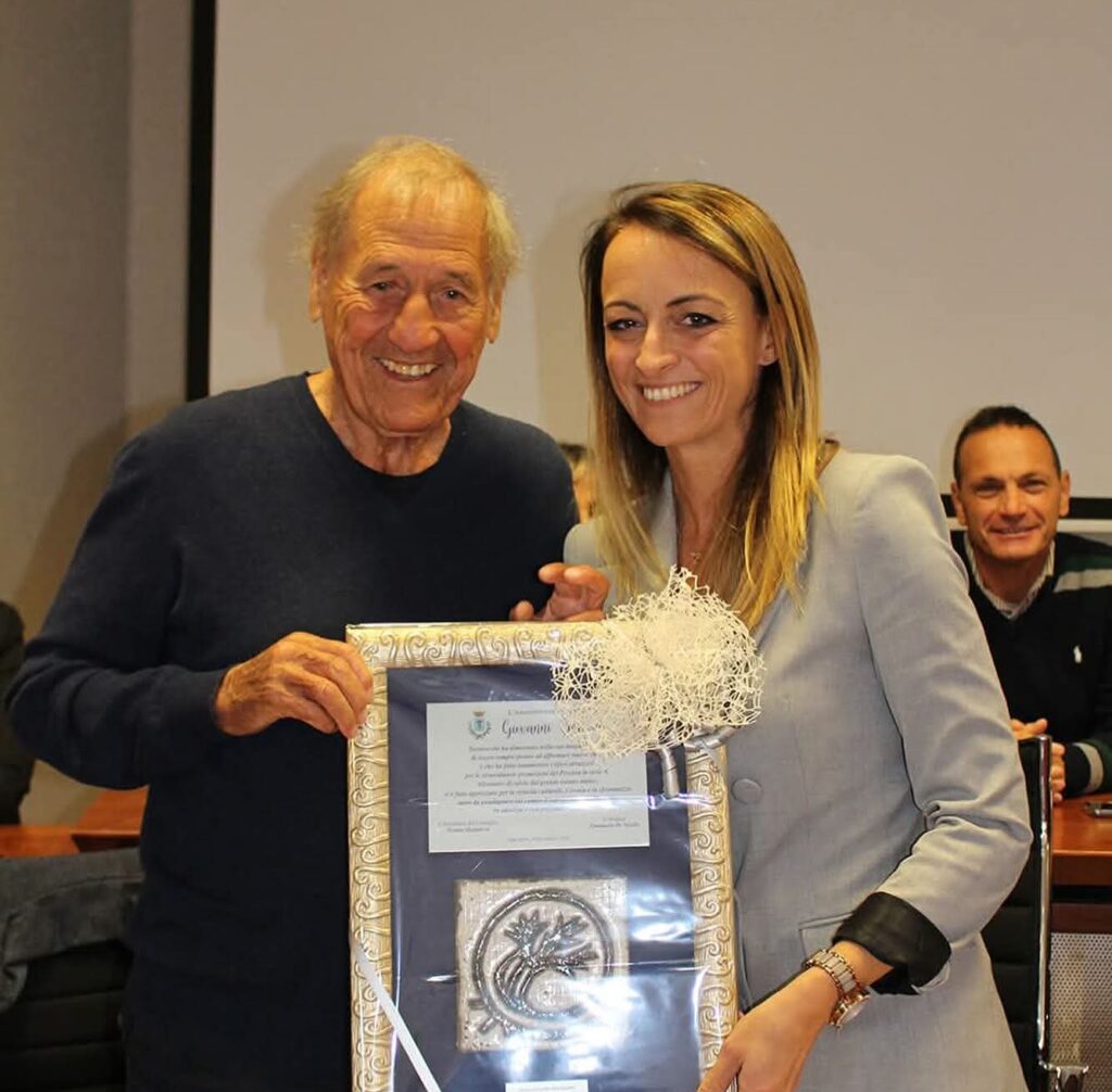 Nella primavera del 2022 mister Galeone, unitamente all’inseparabile Iaconi, ex direttore del grande Pescara, per il tramite del nostro Meuccio Di Santo, suo carissimo amico e suo profondo estimatore, fu ricevuto dalla nostra Amministrazione Comunale, dalla Sindaca De Nicolis e il Vice Sindaco Spadano, nella sala del Consiglio Comunale.
