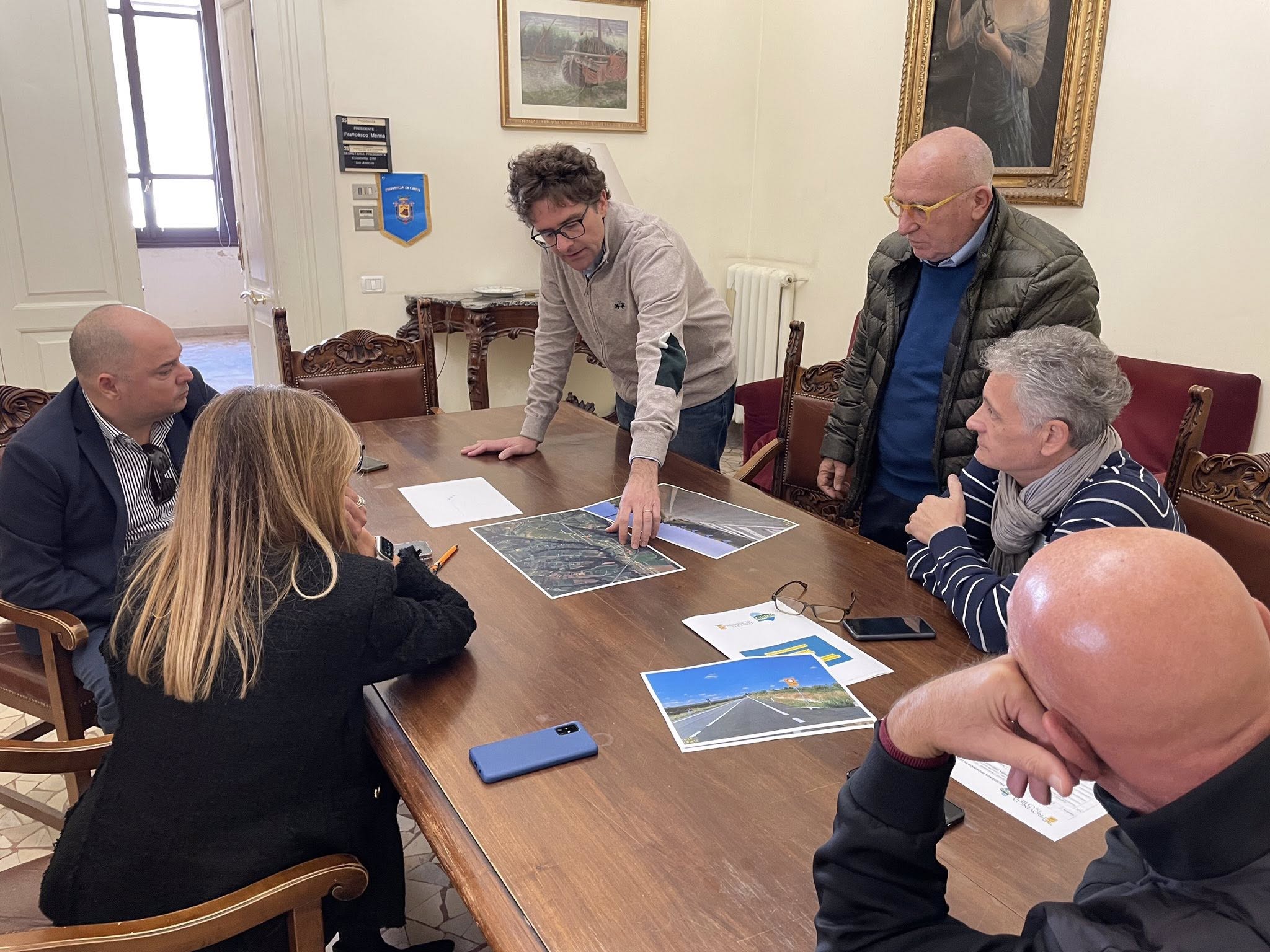 Ieri mattina si è tenuta nella sede principale della Provincia di Chieti una riunione inerente l’apertura della nuova strada provinciale (SP 236) che collegherà Casalbordino a Villalfonsina. All’incontro hanno preso parte il presidente della Provincia Francesco Menna, la dirigente del settore 2 (Costruzione e gestione delle strade provinciali) Paola Campitelli, il responsabile del Servizio manutenzione Domenico Di Ciano, il consigliere provinciale Carlo Moro (delegato alla viabilità del Vastese) e i sindaci Filippo Marinucci (Casalbordino) e Mimmo Budano (Villalfonsina).