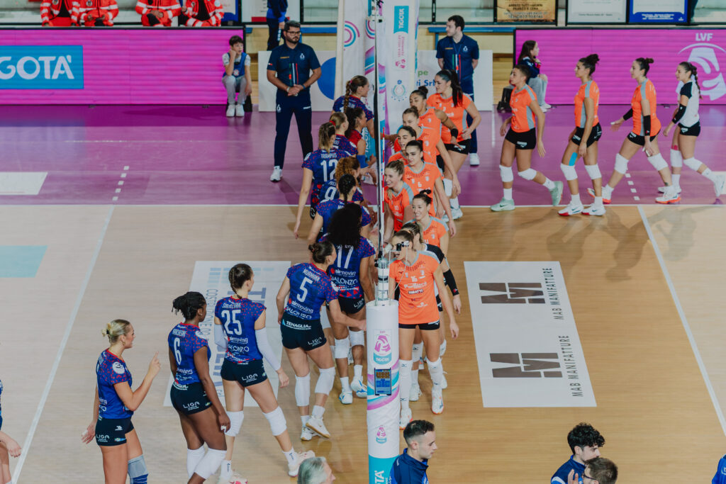 Murmann riprende le ostilità con un attacco e un errore. Ndoye e Siakretava fissano il 4-2, Riva impatta sul 4-4. Siakretava allunga sull’8-5, ma altre due imprecisioni locali e l’attacco di Bierria ripristinano la parità sull’8-8. Pulliero e Krasteva portano in vantaggio Altamura, Murmann alza il muro dell’11-11. Dopo le firme di Marchesini e Ndoye, la Panbiscò riprende la marcia con Soriani e Bierria, 14-17. Massimo vantaggio ospite sul 15-20 con Caracuta, Siakretava non vuole lasciare scappare la Panbiscò, 16-20. Gli errori in attacco di Sassolini e Siakretava spingono Altamura sul 16-23, Trampus mette giù il -6 per poi andare fuori misura con la battuta che vale il 18-25 dello 0-2 Panbiscò.