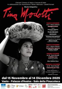 Oggi, 10 novembre 2025, la biblioteca comunale “Raffaele Mattioli” delle scuderie di Palazzo Aragona a Vasto ha ospitato la conferenza stampa di presentazione della mostra, dedicata alla fotografa Tina Modotti, che si terrà nella Pinacoteca di Palazzo d’Avalos dal 15 novembre al 14 dicembre 2025. L’iniziativa, patrocinata dall’assessorato alla Cultura del Comune di Vasto e della Provincia di Chieti, è promossa dal Club per l’Unesco di Vasto, in collaborazione con l’associazione “Storia e memoria-Castelli Romani”. Presenti alla conferenza stampa, per il Comune di Vasto, l’assessore alla Cultura Nicola Della Gatta e la consigliera Maria Molino.