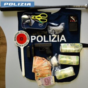 I controlli sono stati mirati nei confronti di soggetti dediti allo spaccio di stupefacenti e che si ritenevano detentori di armi non legalmente detenute e strumenti atti ad offendere e sono consistiti anche nell’esecuzione di diverse perquisizioni domiciliari, veicolari e personali. I sospetti delle forze dell’ordine si sono in effetti ritenuti fondati in quanto nel corso di una prima perquisizione presso l’abitazione di un soggetto di 44 anni, pregiudicato, veniva rinvenuta una pistola calibro 9×21 con due caricatori riforniti per un totale di 16 cartucce, un involucro contenente 55 grammi di sostanza stupefacente del tipo cocaina, nonché strumentazione per il confezionamento di dosi, una mazza da baseball, un coltello a serramanico e la somma di circa 30 mila euro in contanti. Successivi accertamenti esperiti nei confronti dell’arma da fuoco permettevano di stabilire che si trattava del provento di un furto in abitazione compiuto anni addietro in un’altra in provincia. Per tale motivo, l’uomo veniva arrestato in flagranza di reato per i delitti di detenzione ai fini di spaccio di sostanza stupefacente del tipo cocaina, detenzione abusiva e ricettazione dell’arma da fuoco.