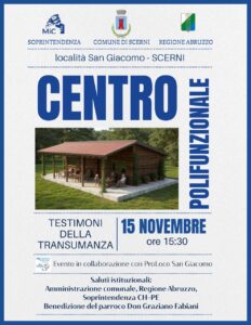 “Conclusi i lavori di realizzazione e sabato 15 verrà inaugurata la nuova Casa sociale polifunzionale che sorgerà dietro la Chiesa di San Giacomo denominata “I Testimoni della Transumanza”.