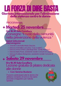 In occasione della Giornata internazionale per l’eliminazione della violenza contro le donne, l’Amministrazione comunale organizza una due-giorni dedicata al tema.