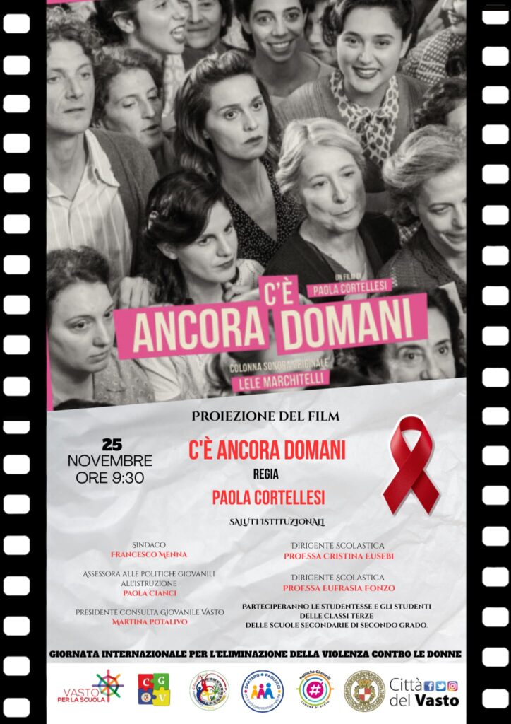 Nel giorno della ricorrenza, martedì 25 novembre, le classi terze delle scuole secondarie di primo grado parteciperanno alla proiezione del film 𝘾’𝙚’ 𝙖𝙣𝙘𝙤𝙧𝙖 𝙙𝙤𝙢𝙖𝙣𝙞 di Paola Cortellesi, nell’ambito del percorso Scuola al Cinema per la legalità.