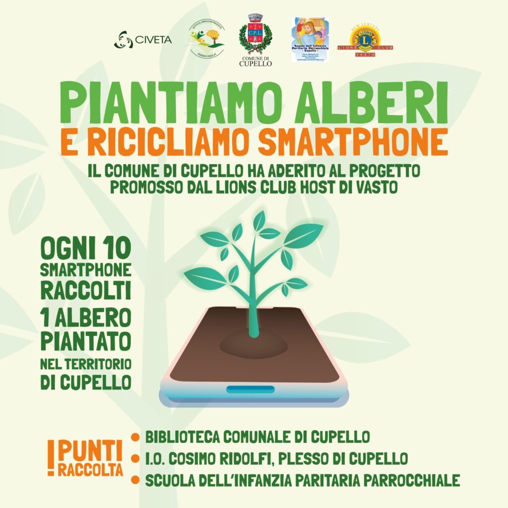 Il Comune di Cupello ha aderito al service nazionale Lions “Piantiamo Alberi e Ricicliamo Smartphone”, promosso dal Lions Club Host Vasto con il patrocinio del Ministero dell’Ambiente e della Sicurezza Energetica.