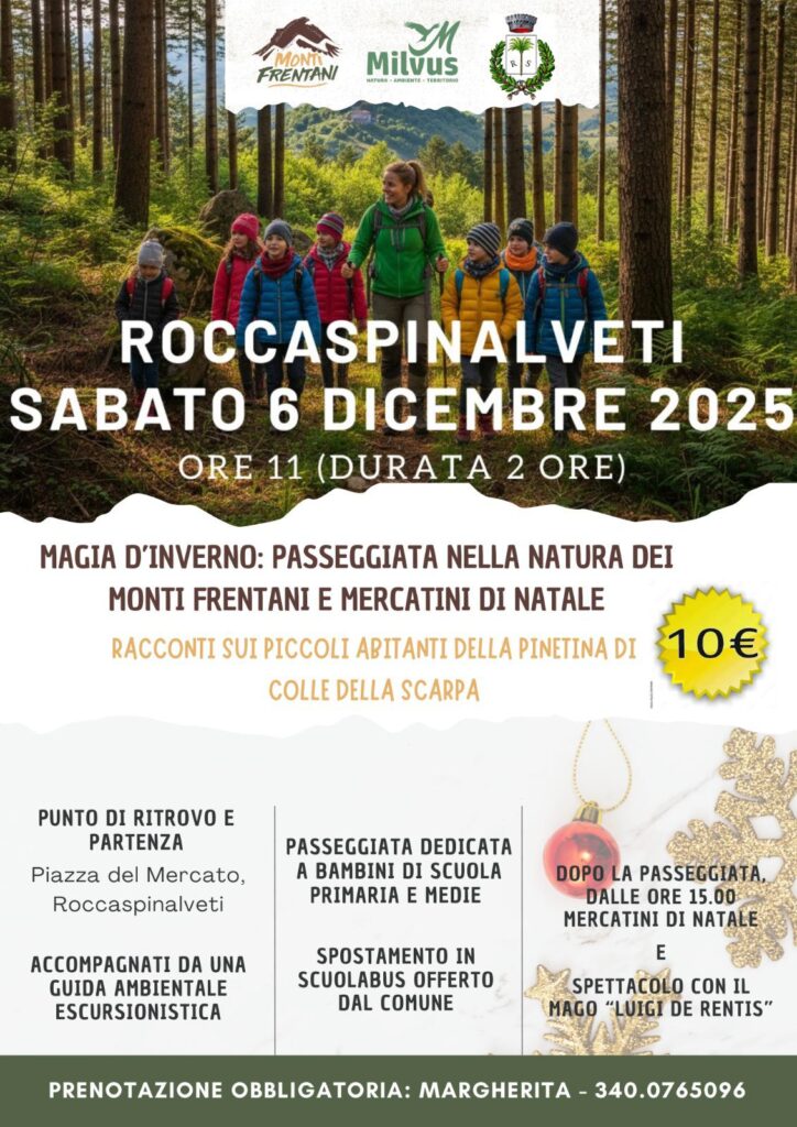Due ore immersi nella natura. Sabato 6 dicembre Roccaspinalveti farà infatti immergere i bambini di scuola primaria e medie  in una passeggiata tra i Monti Frentani . Alle ore 11, da Piazza del Mercato, si partirà per l’escursione guidata nella pinetina di Colle della Scarpa, dove i partecipanti ascolteranno racconti sui “piccoli abitanti” del bosco.