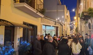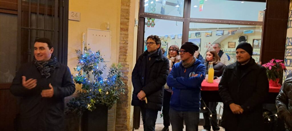 All’accensione delle nuove luminarie don Domenico Spagnoli, il Sindaco Menna, l’Assessore Della Gatta e il Coro il Golfo per un bel momento di aggregazione e comunità con degustazione di castagne e buon vino.