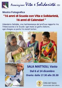 Si è aperta il 7 dicembre scorso a Vasto, nella Sala Mattioli di Corso De Parma, la mostra fotografica “16 anni di Scuola con Vita e Solidarietà, 16 anni di Calendari”, un’esposizione che celebra lo storico rapporto tra l’associazione Vita e Solidarietà e le scuole del territorio. La mostra, promossa con il patrocinio dell’assessorato alla Cultura del Comune, sarà visitabile fino al 14 dicembre 2025, dalle 17.30 alle 20.30. Il Calendario non è solo un prodotto editoriale, ma un laboratorio che stimola empatia, creatività e consapevolezza sociale nelle giovani generazioni. Il ricavato dalla distribuzione dei calendari sostiene da anni progetti umanitari fondamentali nella Repubblica Democratica del Congo e nello Sri Lanka. All’inaugurazione hanno preso parte l’assessore alla Cultura Nicola Della Gatta e il consigliere Luigi Marcello.