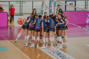 La formazione giallonera è allenata da coach Matteo Solforati, assieme a Elisa Cella. Al palleggio l’esperienza della modenese Vittoria Prandi si fonde alla spensieratezza della giovanissima classe 2007 Caterina Schillkowski. Nel ruolo di opposto, la coppia tutta straniera composta dall’ex Messina Mychael Vernon e dalla lettone del 2007 Katrina Struka. In banda, ecco la trentina ex Futura, Macerata e Trento Francesca Michieletto con la classe 2006 ex Lecco Giorgia Amoruso, pericolo numero 1 in attacco (autrice di 138 attacchi punto, 20 muri e 9 aces) e la toscana ex Macerata Arianna Vittorini. Il reparto centrali è composto dalle ex Messina Rossella Olivotto e Dalila Modestino, assieme a Lea Orlandi, classe 2006 scuola Imoco. I liberi rispondono ai nomi di Beatrice Parrocchiale, classe 1995 ex Milano e Scandicci, vincitrice di una Cev Cup e Elena Arici, giovanissima promessa bresciana (2007) in arrivo dall’annata all’Imoco San Donà, conclusa col titolo nazionale under 18.