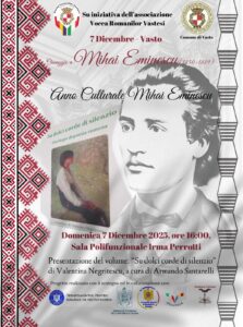 Su iniziativa dell’associazione Vocca Romanilor Vastesi, il 7 dicembre 2025, la Sala Irma Perrotti del Polo Bibliotecario ‘Raffaele Mattioli’ ha ospitato la presentazione del libro “Su dolci corde di silenzio” di Valentina Negritescu, a cura di Armando Santarelli. L’evento, molto partecipato, è stato patrocinato dal Comune di Vasto, confermando l’attenzione dell’amministrazione verso le iniziative culturali che valorizzano il dialogo e l’incontro con comunità originarie di altri Paesi e residenti a Vasto.