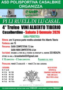 È la prima gara dell’anno podistico solare 2026 con omologazione UISP. Per tutti i partecipanti, ritrovo alle 14:00 e partenza alle 15:00 presso il punto vendita aziendale Vini Alberto Tiberio (piazza Zimarino), con possibilità di scegliere tra la competitiva di circa 7 chilometri (quattro giri tra i vicoli di Casalbordino, su un anello di poco inferiore ai 2 chilometri) e la passeggiata non agonistica di circa 4 chilometri.