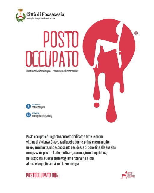 Il Comune di Fossacesia ha aderito ufficialmente all’iniziativa di sensibilizzazione “Posto Occupato”, un gesto simbolico ma di grande valore civile e culturale, per ricordare le donne vittime di violenza che non possono più occupare il loro posto nella società.