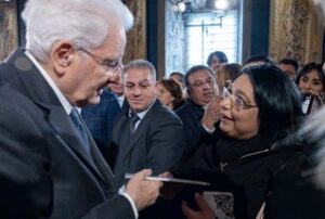 Giulia Di Rocco segna un traguardo storico: è infatti l’unica donna Rom ad essere ricevuta dal Presidente della Repubblica Sergio Mattarella per l’ottavo anno consecutivo al quale ha donato la bandiera romanì. Un riconoscimento che non ha precedenti e che testimonia il valore del suo instancabile lavoro come ponte tra la cultura Rom e le istituzioni della Repubblica Italiana.