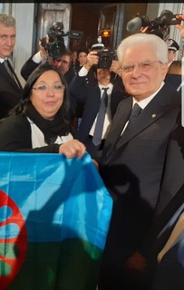 Giulia Di Rocco segna un traguardo storico: è infatti l’unica donna Rom ad essere ricevuta dal Presidente della Repubblica Sergio Mattarella per l’ottavo anno consecutivo al quale ha donato la bandiera romanì. Un riconoscimento che non ha precedenti e che testimonia il valore del suo instancabile lavoro come ponte tra la cultura Rom e le istituzioni della Repubblica Italiana.
