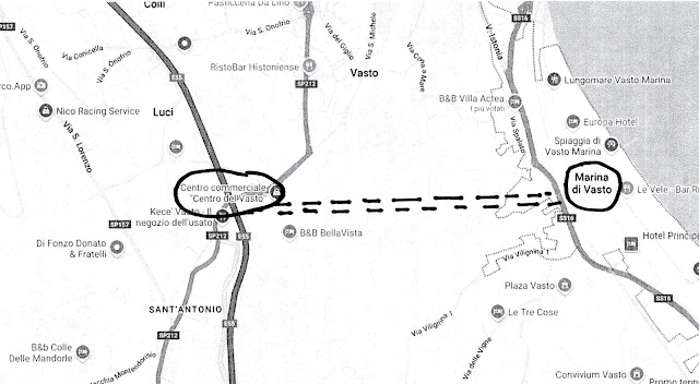 Siccome è triste pensare ad un’ambulanza con un malato grave che rimane bloccata in mezzo al traffico della Marina, più di uno in questi giorni, ha ritirato fuori la vecchia idea di collegare con una nuova arteria la Vasto alta (zona Centro Commerciale Pianeta) con la SS16, proprio dove finisce la ipotizzata Variante. Ci fanno notare che tale strada comunale risulta ancora prevista nel vigente Piano Regolatore anche se si tratta di un tracciato di massima che in caso bisogna mettere a punto con uno studio di fattibilità. Di certo l’investimento sarà molto impegnativo.