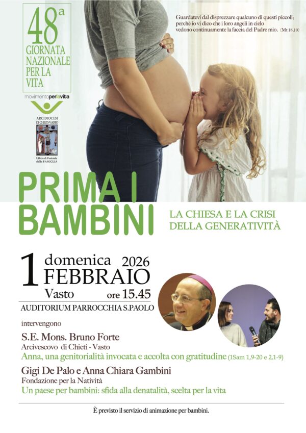 Domenica 1 Febbraio 2026 si celebra la GIORNATA PER LA VITA presso l’Auditorium San Paolo a VASTO alle ore 15.45.