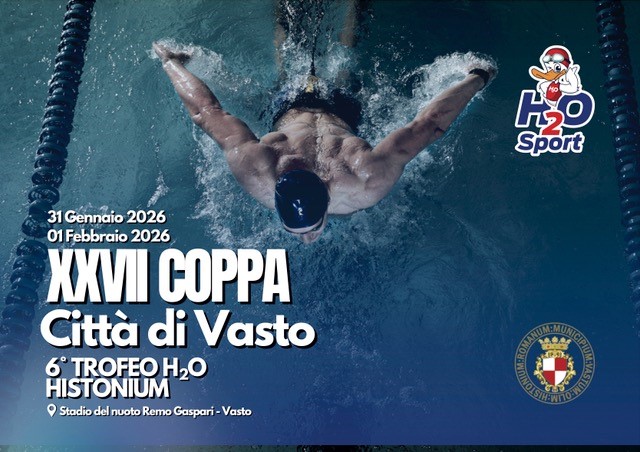 Torna il grande appuntamento con la XXVII Coppa Città del Vasto, Meeting Nazionale di Nuoto organizzato come di consueto dalla società H2O Sport del Presidente Massimo Tucci. Nel prossimo weekend, sabato 31 gennaio e domenica 1 febbraio riflettori accesi sullo stadio del nuoto Remo Gaspari dove si confronteranno i migliori atleti provenienti da tutta la penisola pronti a regalare spettacolo ed emozioni alla ricerca del risultato più prestigioso.