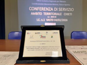 La Scuola Secondaria di I Grado “Raffaele Paolucci” IC1 Vasto è stata premiata davanti ai docenti di scienze motorie e sportive arrivati da tutta la provincia per una Conferenza di servizio ospitata nella sala multifunzionale del plesso S. Maria del Sabato Santo come “Scuola più sportiva della provincia” nello scorso anno scolastico.