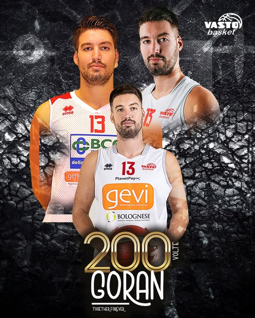 Arrivato a Vasto nell’estate del 2017, salvo una parentesi di due stagioni, Goran ha sempre scelto questi colori, diventando negli anni un simbolo autentico del club. Leader carismatico, trascinatore, punto di riferimento dentro e fuori dal campo, ha scritto pagine importanti della nostra storia con 3703 punti realizzati in sette stagioni, due promozioni indimenticabili e una salvezza straordinaria conquistata lo scorso anno.