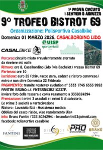 Per iniziativa della Polisportiva Casalbike di Bruno Fantini, torna in scena il Trofeo Bistrot69 di mountain bike. La manifestazione è in programma per domenica 1°marzo nel territorio comunale di Casalbordino con l’entusiasmo di sempre e l’obiettivo di iniziare al meglio la stagione delle ruote grasse all’interno del circuito I Sentieri d’Abruzzo targato UISP.