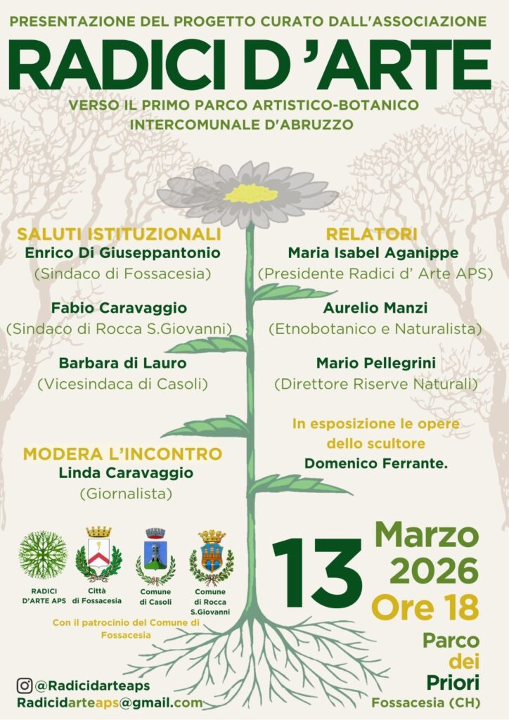 Il prossimo 13 marzo, alle ore 18:00, la suggestiva cornice del Parco di Priori, a Fossacesia, ospiterà la presentazione ufficiale del progetto “Radici d’Arte”, un’iniziativa che segna un cambio di paradigma nella gestione del patrimonio verde e nella rigenerazione urbana.