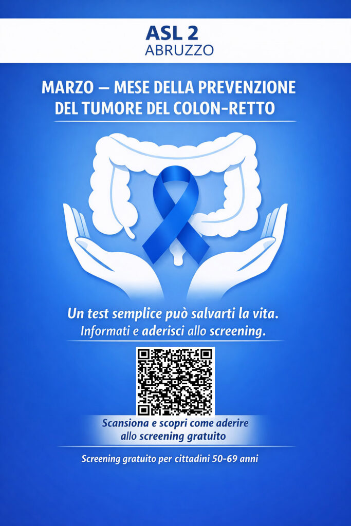Un test semplice, eseguito comodamente a casa, può salvare la vita. A marzo, mese dedicato alla prevenzione del tumore del colon-retto, la Asl Lanciano Vasto Chieti, attraverso i propri servizi di screening e di endoscopia, rinnova l’invito a tutti i cittadini residenti nella fascia di età compresa tra i 50 e i 69 anni a partecipare attivamente ai programmi di diagnosi precoce.