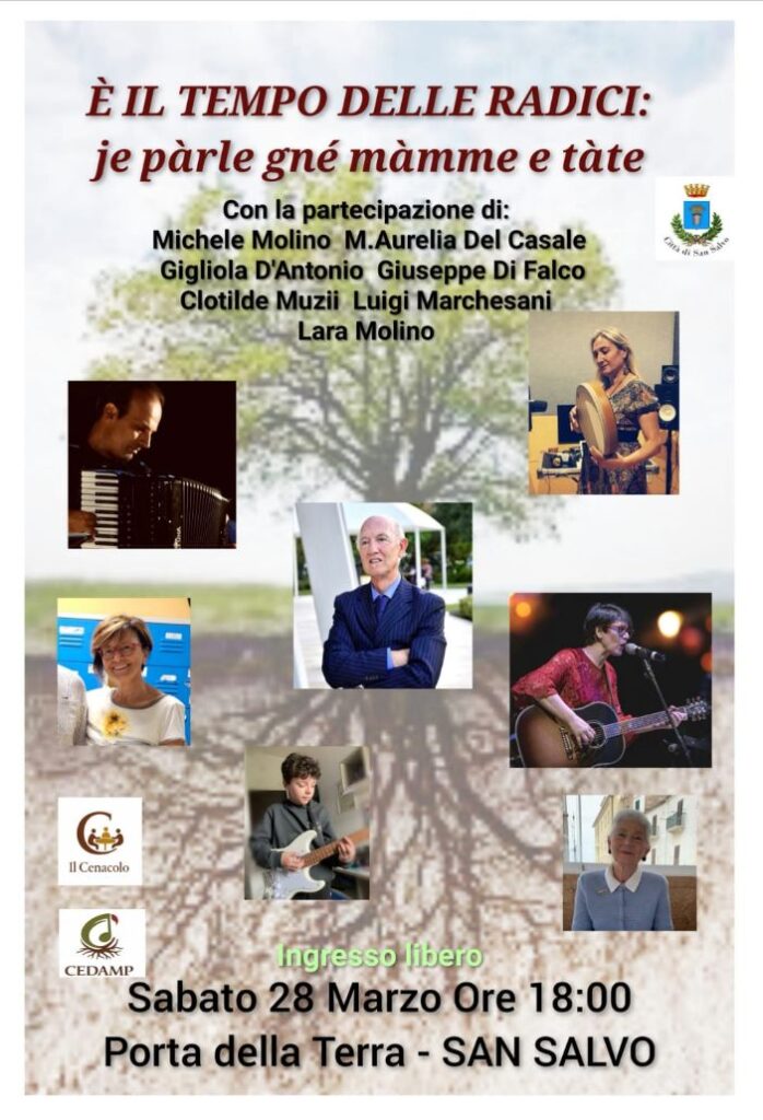 Lo spettacolo rientra nel programma del “Marzo Rosa” organizzato dall’Assessore alla Cultura nel Comune di San Salvo. Il dialetto (linguaggio degli antenati) sta scomparendo, bisogna fare qualcosa. Infatti, le associazioni “Il Cenacolo e Cedamp” di San Salvo stanno lavorando per un grande progetto che tende a salvaguardare il bel dialetto “fresco come l’acqua delle fontane”