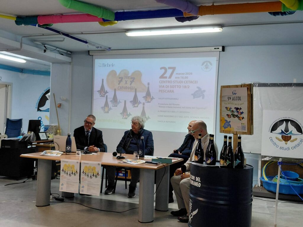 «Desidero rivolgere – ha concluso l’assessore Barisano – un sentito ringraziamento al presidente del Centro Studi Cetacei, Vincenzo Olivieri, per l’impegno costante e la passione con cui promuove iniziative di grande valore scientifico, culturale e ambientale. Un ringraziamento va inoltre alla Cantina San Michele Arcangelo di Vasto, al presidente Michele Del Borrello e a Camillo Zulli, direttore ed enologo della BIO Cantina Sociale Orsogna, che hanno saputo tradurre questo progetto in un prodotto concreto, realizzando bottiglie di vino con etichette ispirate ai capodogli. Allo stesso modo, desidero ringraziare l’artista Silvestro Regina, capace di coniugare in maniera originale e suggestiva l’immaginario dei capodogli con quello delle dee».