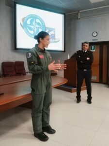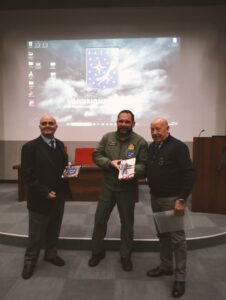 Originaria di San Salvo che ha raccontato agli studenti la sua esperienza in Aeronautica e l’attaccamento all’Arma Azzurra. La visita è stata organizzata e coordinata dall’AAA Aviatori d’Italia Sezione di Vasto con delegazione: Presidente Lgt. (c) Ciro Confessore, Segretario Roberto Bruno, Componenti Direttivo Renzo Trivilini, Av. VAM (c) Nicola D’Adamo e Pierpaolo Del Casale, Soci Av. Sc. (c) Mario Di Gregorio e Luigi Soranzo ed altri simpatizzanti Aeronautica. I docenti accompagnatori sono stati Diego D’Annunzio e Natascia Di Giambattista Palizzi-Mattei, Lorenzo Di Legge Mattioli, Ariano Cristiano Pàntini-Pudente. Momenti di forte entusiasmo ed anche commozione hanno caratterizzato la giornata sia durante lo scambio crest col Vice C.te DASAS a cui sono stati donati il libro sulla storia dell’Aviere Silvio Trivilini di Vasto scritto dal figlio Renzo e il mosaico con l’Icaro e l’effigie di Mario de Bernardi realizzato da Pierpaolo Del Casale sia con l’incontro con la S.Ten Francesca Pascucci conterranea di San Salvo e Vasto.