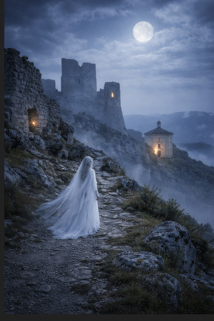 In quel momento, una nebbia sottile avvolse la rocca e la contessa sparì, avvolta dallo stesso bianco delle sue vesti.