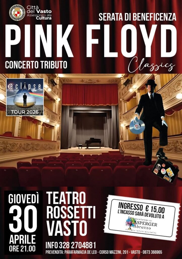 Giovedì 30 Aprile al Teatro Rossetti di Vasto andrà in scena il concerto tributo ai PINK FLOYD degli ECLIPSE, la band vastese che negli ultimi anni si è fatta molto apprezzare per il suo sound raffinato ed elegante.