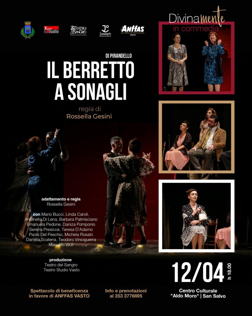 Il progetto di beneficenza culminerà con lo spettacolo “Divinamente in commedia: Maestre chist chi sò” produzione di Anffas Vasto con il supporto del Teatro del Sangro-Teatro Studio Vasto e dell’associazione Joseph. Successivamente verrà comunicata la data di rappresentazione.