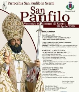 Tutto è pronto per i solenni festeggiamenti in onore di San Panfilo, patrono di Scerni. Il Comitato Feste annuncia con entusiasmo l’inizio del programma 2026, sottolineando l’importanza della collaborazione e della guida spirituale che accompagna questi giorni di gioia.Le celebrazioni inizieranno il prossimo 25 aprile con la storica e attesissima “Tavolata di San Panfilo”. L’evento ha già registrato una partecipazione straordinaria, andando ben oltre le aspettative della vigilia e confermandosi come uno dei momenti più sentiti e conviviali per l’intera comunità.