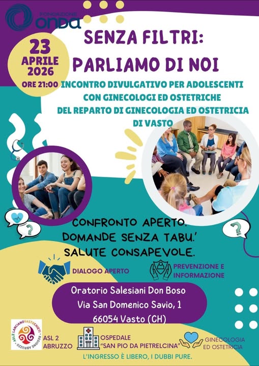 “C’è un’età in cui le domande si moltiplicano e i dubbi diventano “grandi”. Spesso, come ragazzi, si cerca risposta sul web e, come genitori, non sempre si sa come affrontare certi argomenti con la giusta serenità. Niente lezioni noiose, ma un confronto aperto e senza tabù con i ginecologi e le ostetriche del reparto di Ginecologia e Ostetricia dell’Ospedale di Vasto. Parlare di salute significa scegliere la consapevolezza.