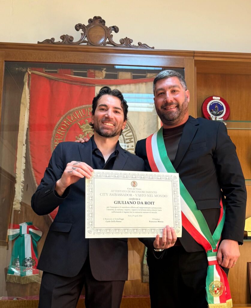 Il Comune di Vasto lancia il progetto “City Ambassador – Vasto nel Mondo”, un’iniziativa volta a costruire e consolidare una rete internazionale di cittadini vastesi residenti all’estero, chiamati a rappresentare, promuovere e valorizzare l’identità culturale, economica e sociale della città. L’obiettivo è trasformare il legame con i vastesi all’estero in una risorsa concreta per lo sviluppo del territorio, rafforzando il posizionamento internazionale della città; promuovendo turismo, cultura e tradizioni locali; valorizzando i cittadini vastesi all’estero; attivando connessioni economiche e relazionali; costruendo una rete globale legata alla città. Tutti i cittadini vastesi che vivono, lavorano o studiano all’estero possono candidarsi per diventare City Ambassador. Le candidature potranno essere inviate all’indirizzo email assessore.dellapenna@comune.vasto.ch.it indicando nome e cognome, città e Paese di residenza, attività svolta, breve presentazione e motivazione. Sono ammesse tutte le candidature. Il primo a ricevere l’attestato è stato Giuliano Da Roit.