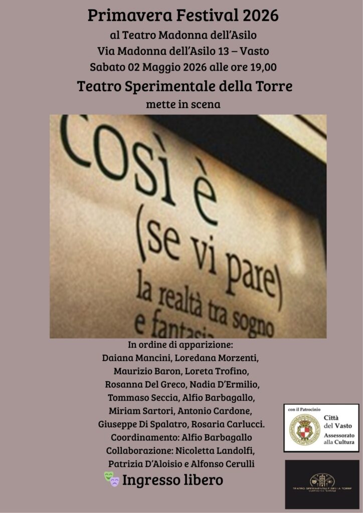 Il confine sottile tra realtà e finzione, tra follia e saggezza, si appresta a scuotere il pubblico vastese. Sabato 2 maggio 2026, alle ore 19:00, il sipario del Teatro Madonna dell’Asilo si alzerà su uno dei capolavori assoluti del teatro del Novecento: “Così è (se vi pare)” di Luigi Pirandello.