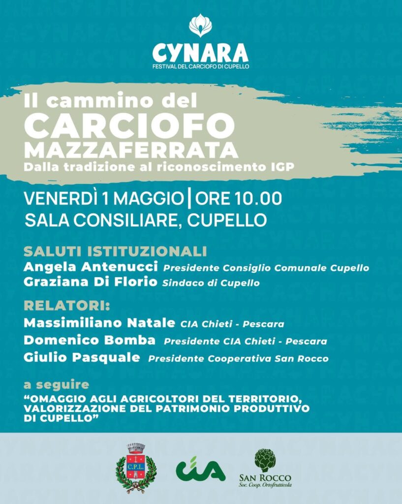 Un viaggio tra tradizione, identitร e futuro del nostro territorio: venerdรฌ primo maggio, alle 10, nella sala Sal Consiliare del Comune di Cupello si terrร un ย importante momento di confronto dedicato alla valorizzazione del Carciofo Mazzaferrata di Cupello, simbolo di identitร agricola, tradizione e sviluppo per il nostro territorio.
